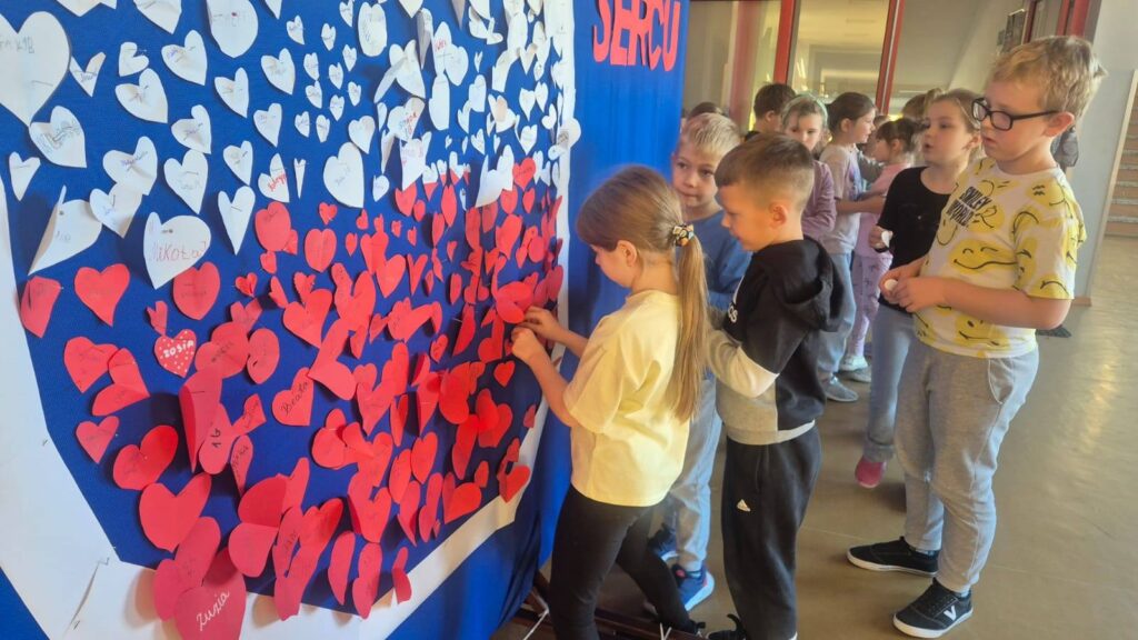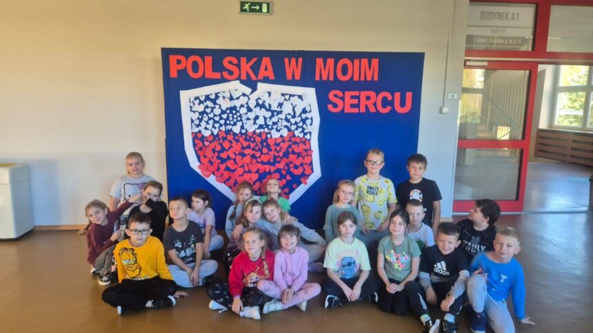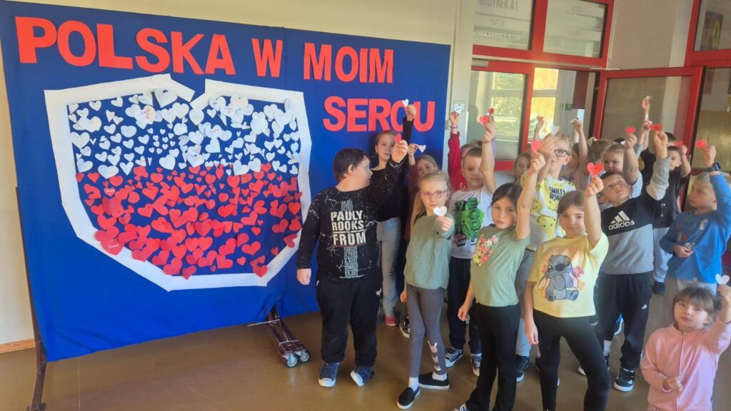 6 listopada dzieci z klasy 2e zaczęły już świętowanie Dnia Niepodległości. Dołączyły do innych dzieci z klas 1, 2 i 3 i również przyczepiły białe i czerwone serduszka na mapie Polski tworząc naszą flagę. W ten sposób chcą okazać, że mają Polskę w swoim sercu, bo są małymi patriotami.
