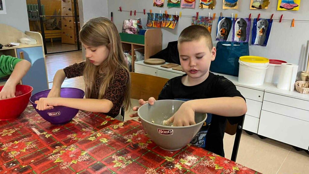 • Samodzielnie wyrabiały ciasto z zaczynem – małe rączki udowodniły, że mają siłę!