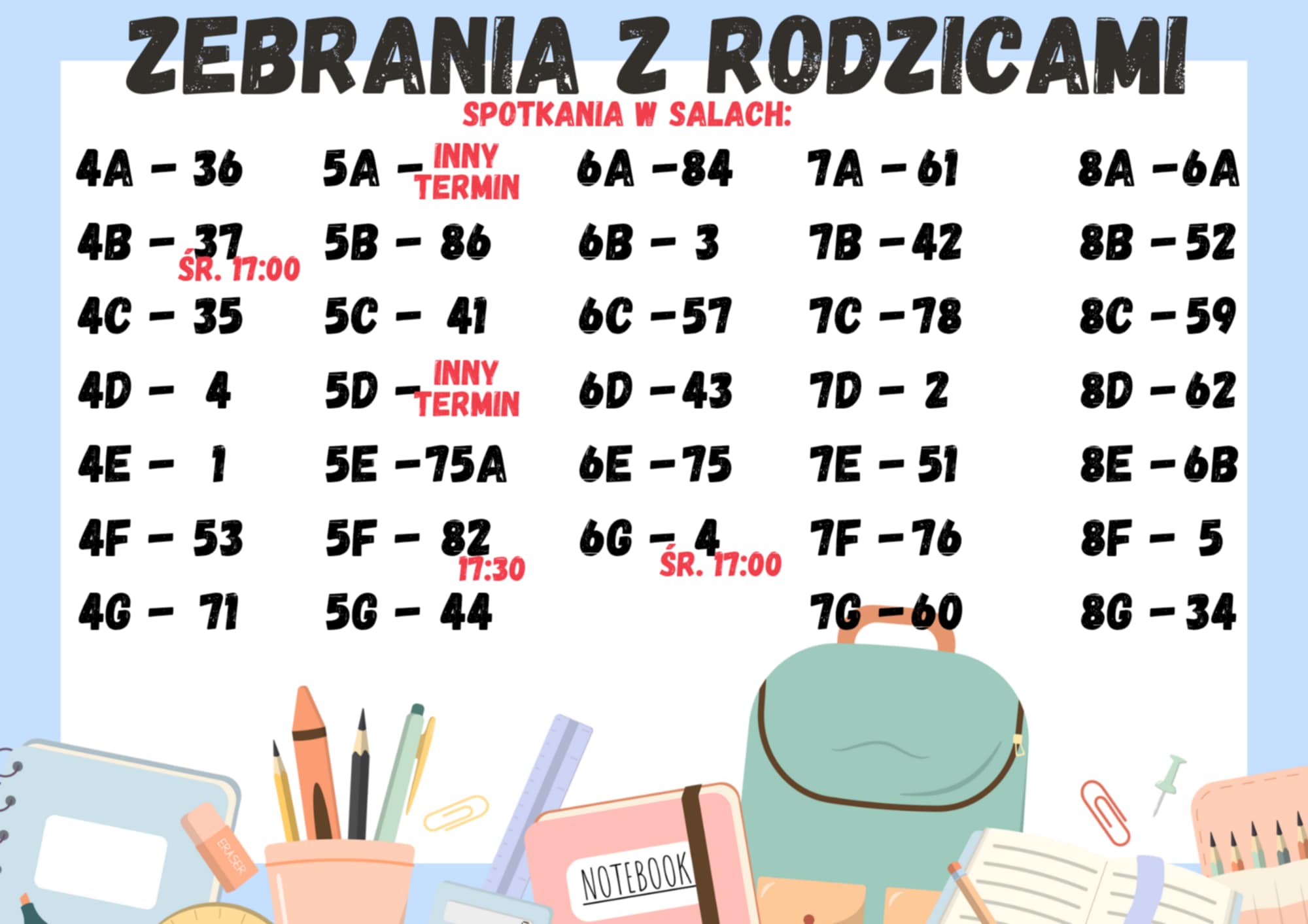 Zebrania z rodzicami- harmonogram
