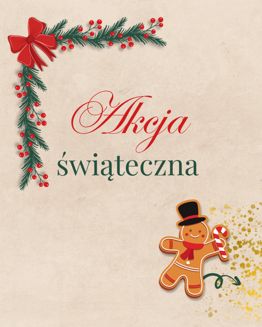 w świątecznym swetrze, z kubkiem kakao, przy choince
