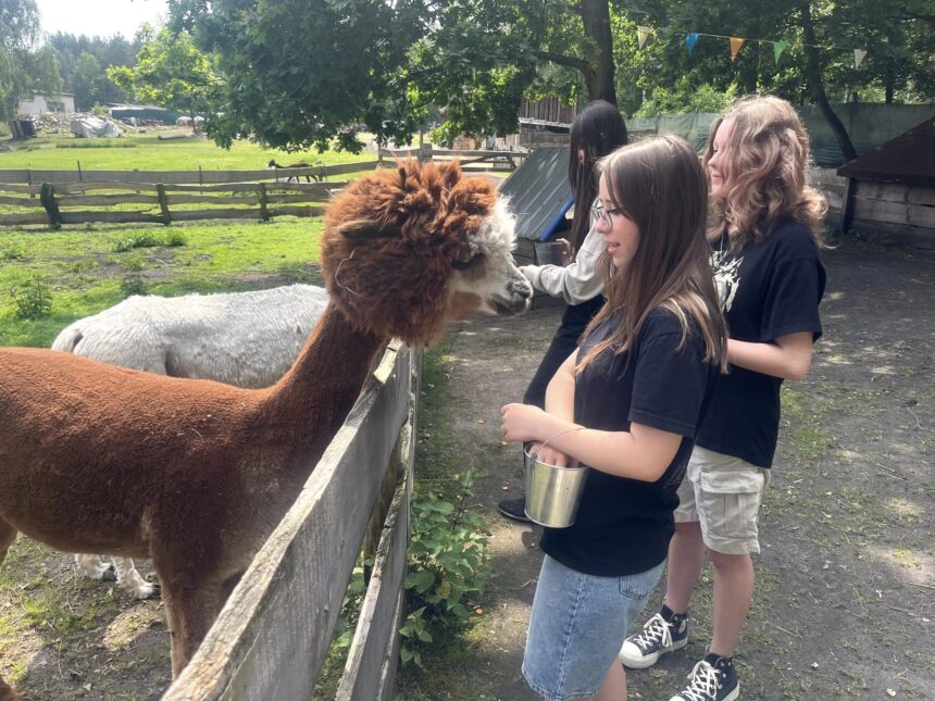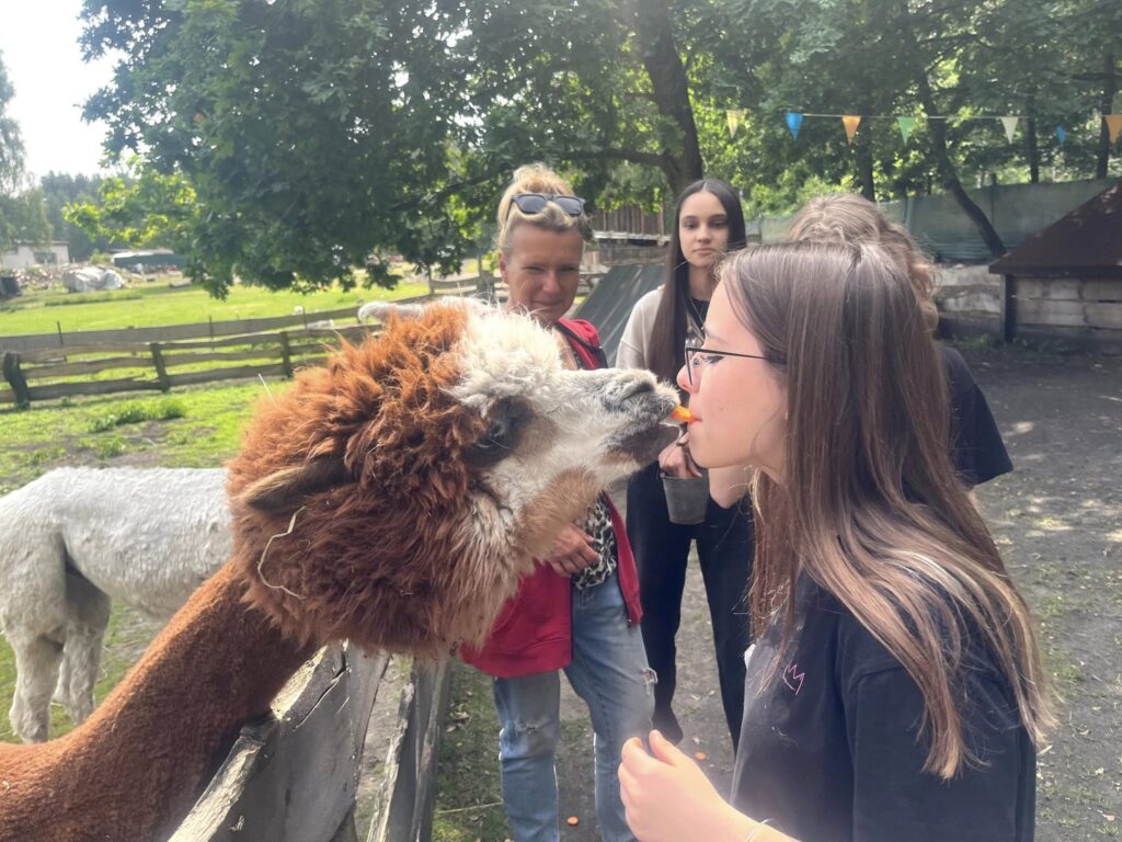 Na miejscu czekały na nas alpaki, kozy, owce i króliki. Zwierzęta okazały się łagodne i przyjazne, a największą atrakcją był spacer z alpakami i możliwość ich karmienia. Po zajęciach odbyło się ognisko, wspólne pieczenie kiełbasek i pianek.
