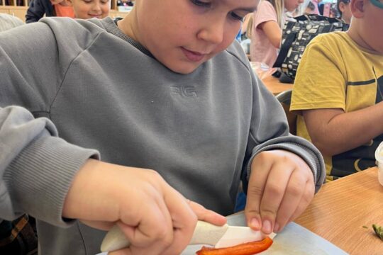 Dziś uczniowie klasy drugiej zamienili się w małych kucharzy i przygotowali pełne witamin, kolorowe śniada...
