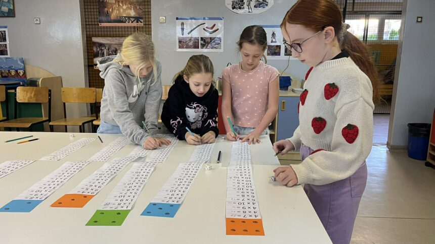 Z tej okazji cały korytarz budynku wypełnił się stacjami z zadaniami związanymi z mnożeniem i dzieleniem. Wszystkie siedem klas trzecich zmierzyło się z przygotowanymi wyzwaniami.