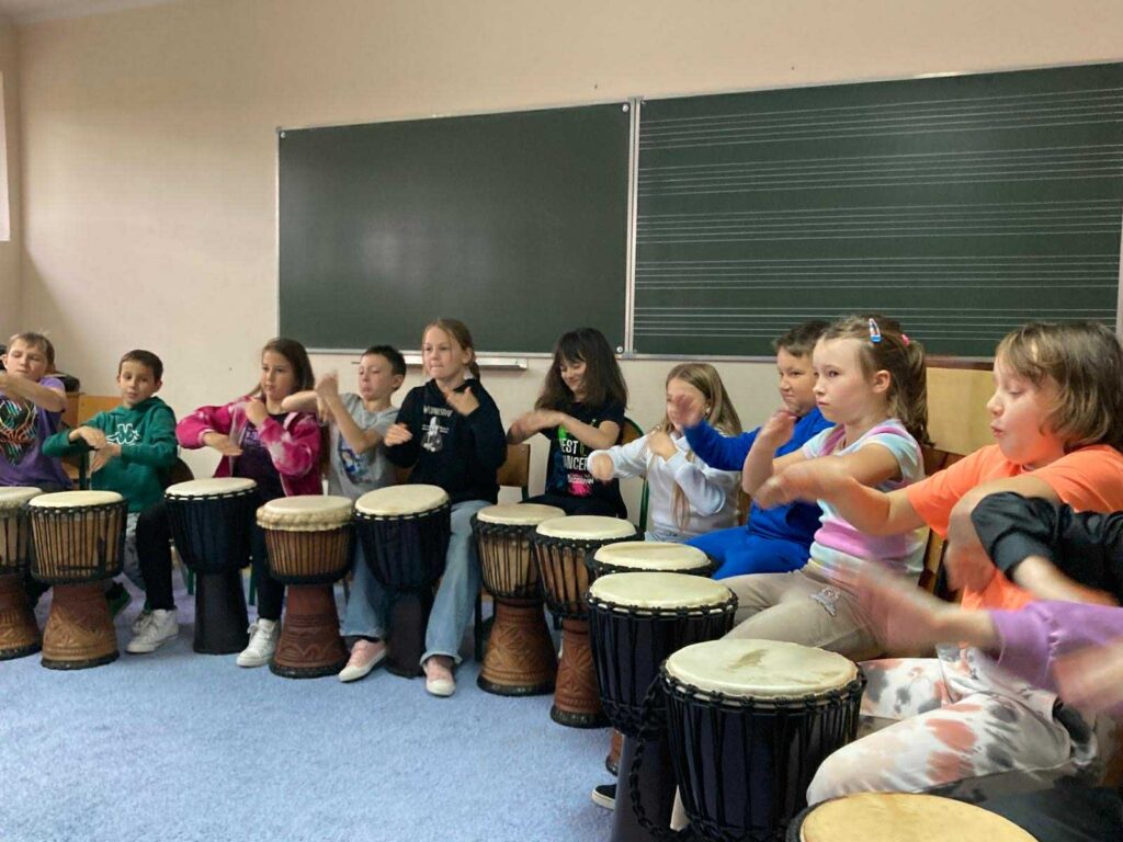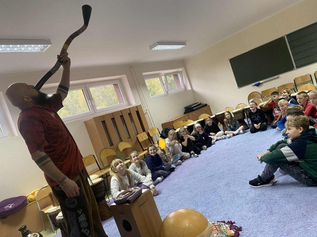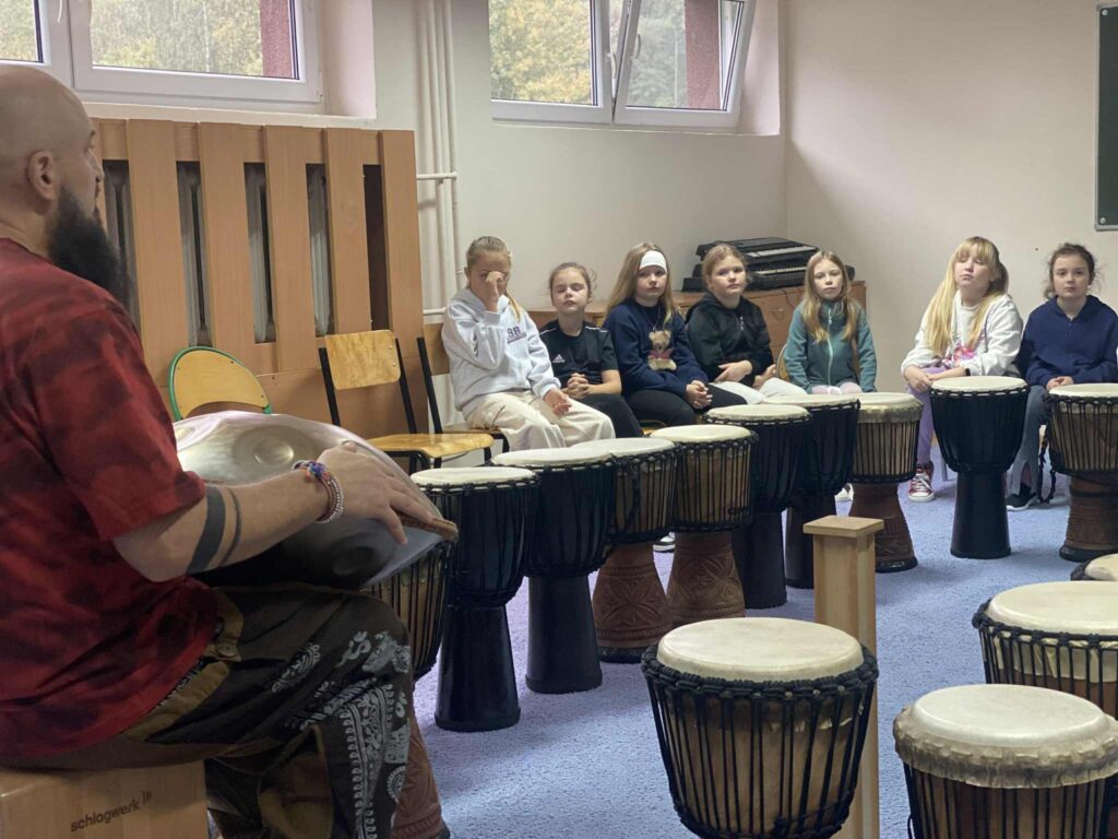 Uczniowie klas 1-3 uczestniczyli przez trzy dni w wyjątkowych warsztatach bębniarskich podczas których odkrywali rytmy i dźwięki instrumentów z różnych stron świata.