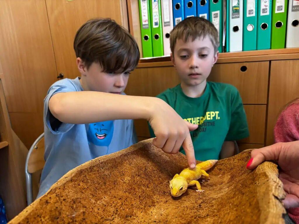 Niezwykli odwiedzający – zwierzęta egzotyczne z Fundacji Egalismo 28 kwietnia 2026 Share Tweet Pin it Uczniowie klasy 2a mieli przyjemność gościć niezwykłych odwiedzających – zwierzęta egzotyczne z Fundacji Egalismo. Spotkanie było nie tylko ogromną atrakcją, ale także cenną lekcją przyrody.Dzieci mogły z bliska zobaczyć rzadkie gatunki, dowiedzieć się ciekawostek na ich temat oraz poznać zasady opieki nad nimi.Dziękujemy Fundacji Egalismo za inspirujące spotkanie! Previous Post Dzień Książki Next Post JUBILEUSZ 40-LECIA „ÓSEMKI”